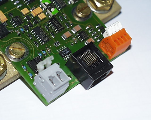 module; gray one for battery voltage, orange one - for two temp sensors.