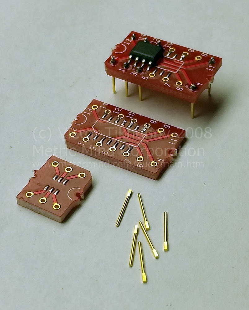 mentioned above. Loose pins and completed PCB example with SOIC package soldered