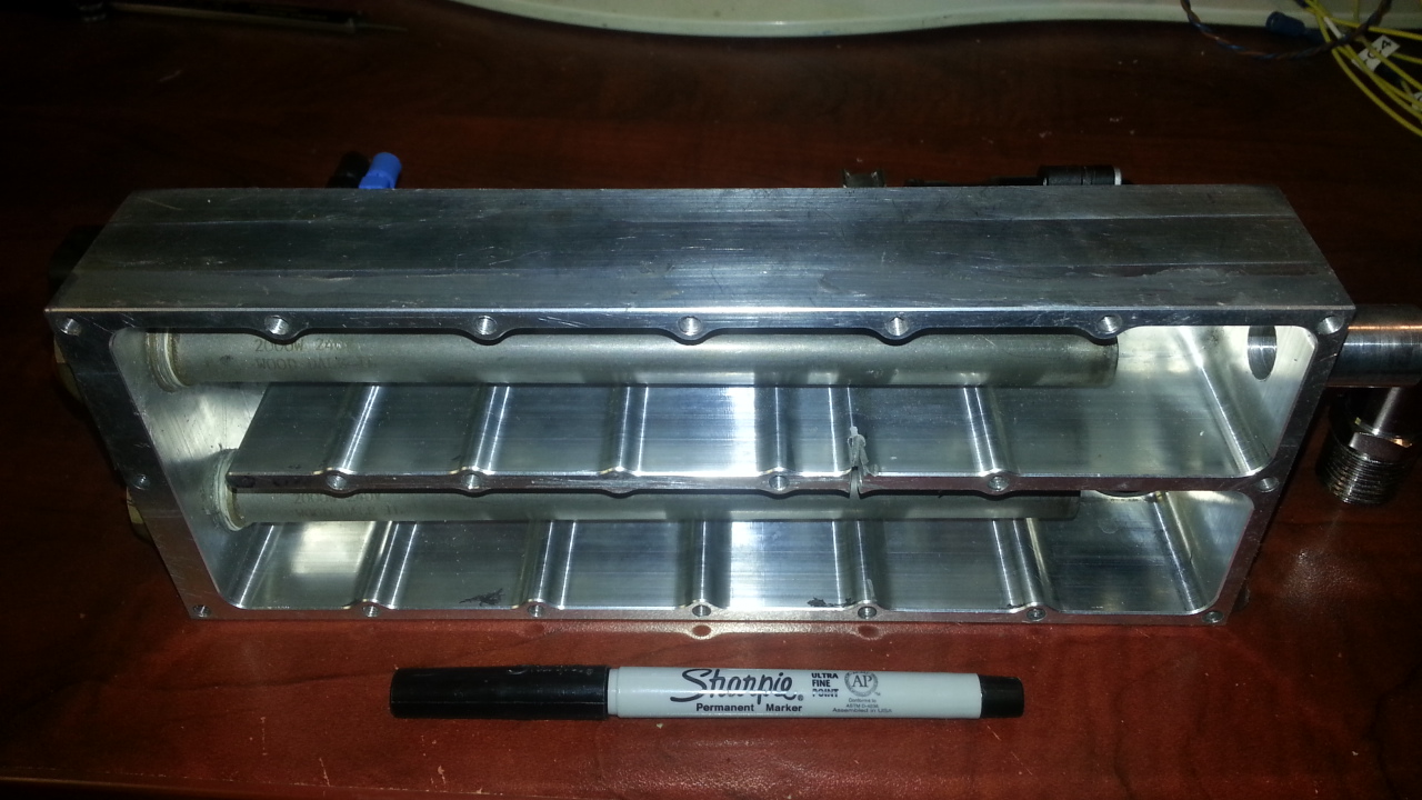 Machined heat exchange chamber.