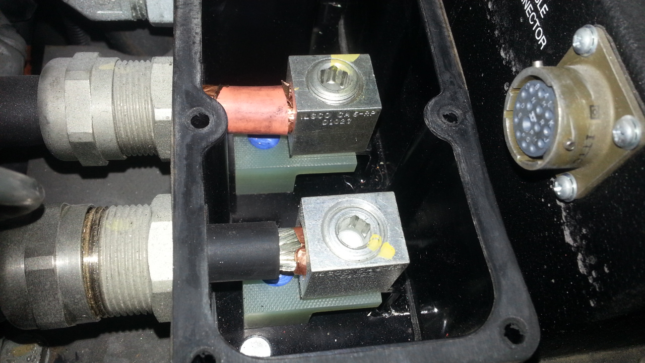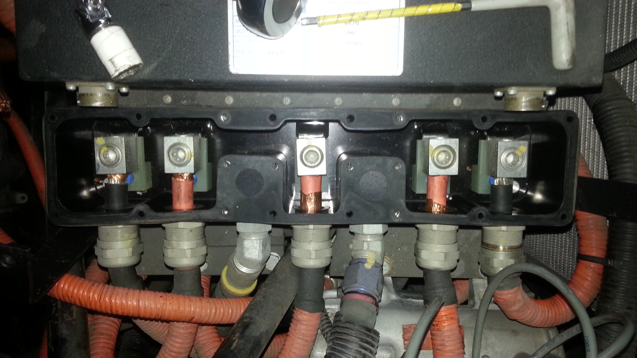 Connections to the UQM power inverter. Hi quality metal feed through glands and