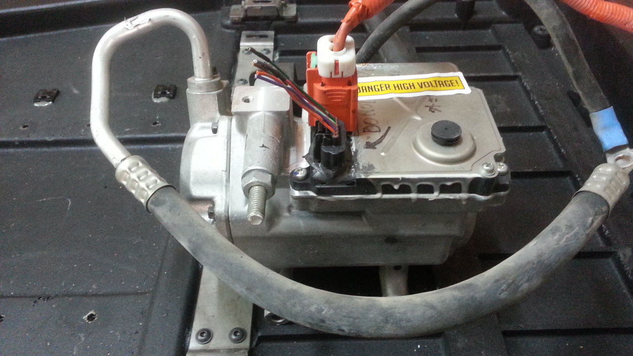Sanden integrated A/C compressor+motor+inverter - self contained unit